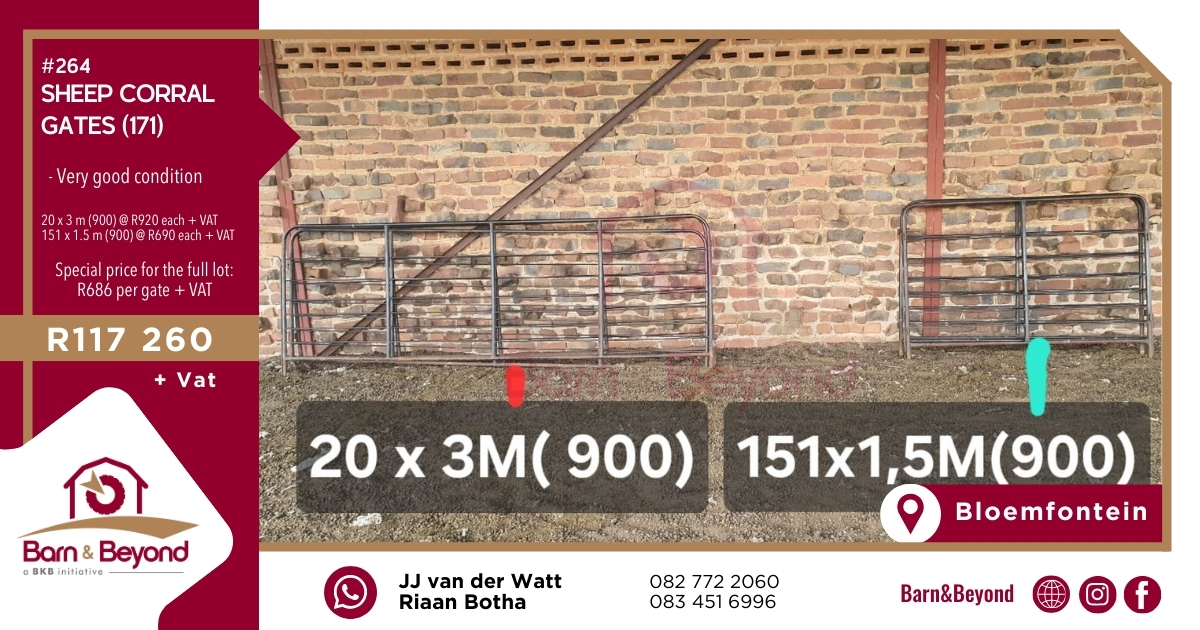 A golden opportunity for anyone looking to expand or refurbish. Sturdy, tidy, and in very good condition—perfect for any sheep farm that takes order, workflow, and safety seriously. Get the entire lot at a special price and build your corral the way it should be.